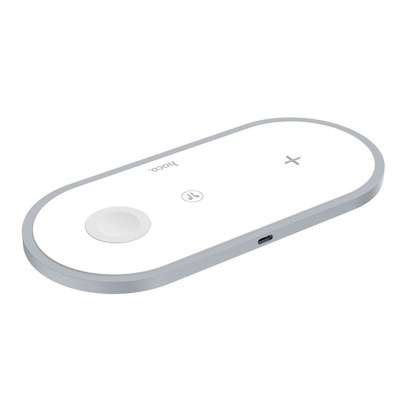 Зарядное устройство Wireless Hoco CW24 - это платформа на которую можно поставить смартфон,часы и наушники одновременно, и если зарядка подключена к сети питания (индикатор является на корпусе), то процесс зарядки начнется, кстати в комплект входит кабель USB - Type-C, которым можно подключить зарядку к сети. Сила входного тока (Input) Hoco CW24 составляет 2.0А. Одной из особенностей этого зарядного устройства является поддержка технологии быстрой зарядки QC 3.0.