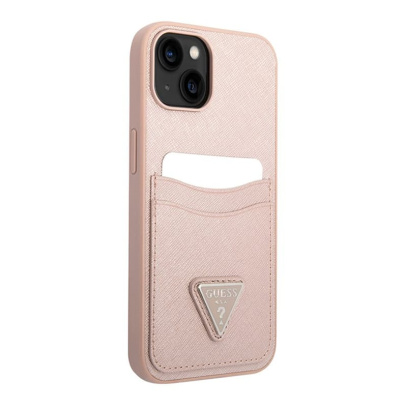 Чехол-накладка с картхолдером бренда Guess подходит для iPhone 14 Plus. Изделие изготовлено из искусственной кожи с имитацией сафьяна, нанесенной на прочную пластиковую основу в сочетании с силиконовым бампером. На спинке чехла расположен картхолдер с двумя отделениями для хранения пластиковых карт и металлический логотип. Чехол плотно облегает корпус телефона, а его конструкция отлично защищает устройство от повреждений, царапин и сколов, которые неизбежны в процессе ежедневной эксплуатации. Высокий бортик вокруг камеры оберегает объектив от механических дефектов. Все отверстия для разъемов, динамика и камеры выполнены точно и аккуратно, а боковые клавиши защищены заглушками, интегрированными в чехол - это защищает их от попадания грязи, пыли и воды. Чехол не препятствует беспроводной зарядке и передаче сигналов NFC.