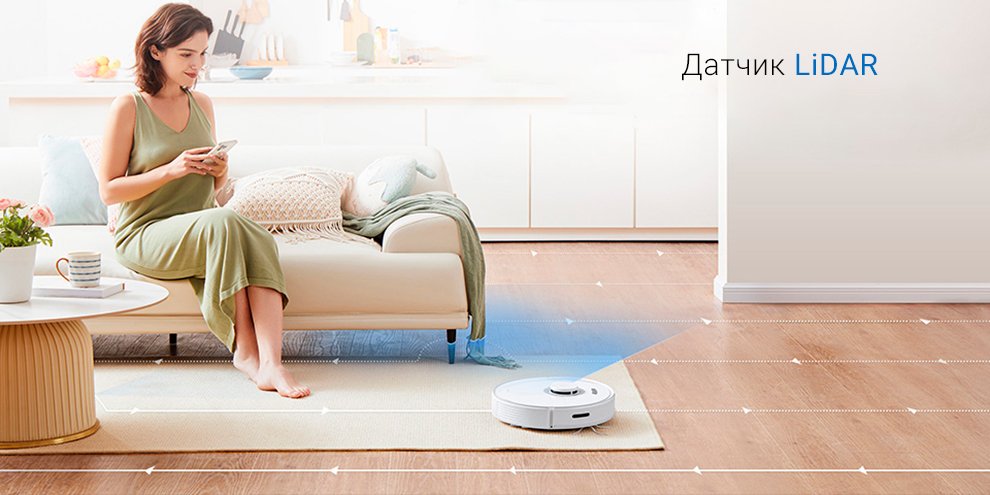 Для свободной ориентации в пространстве робот-пылесос использует датчик LiDAR. Устройство без труда обходит препятствия и выбирает наиболее энергоэффективный маршрут для уборки.