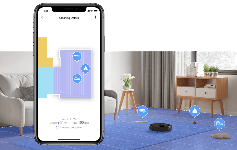 Топовое оснащение, технология HyperForce и реализованные конструктивные решения позволяют роботу-пылесосу создавать сильнейший воздушный поток с мощность всасывания 2500 Па. Такой силы будет достаточно, чтобы легко захватывать даже мелкие частицы грязи и эффективно удалять любые скопления пыли.Девайс поддерживает пять режимов мощности.