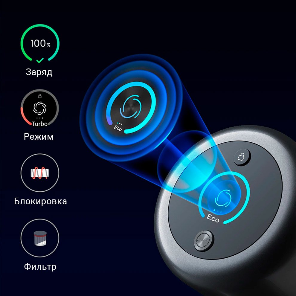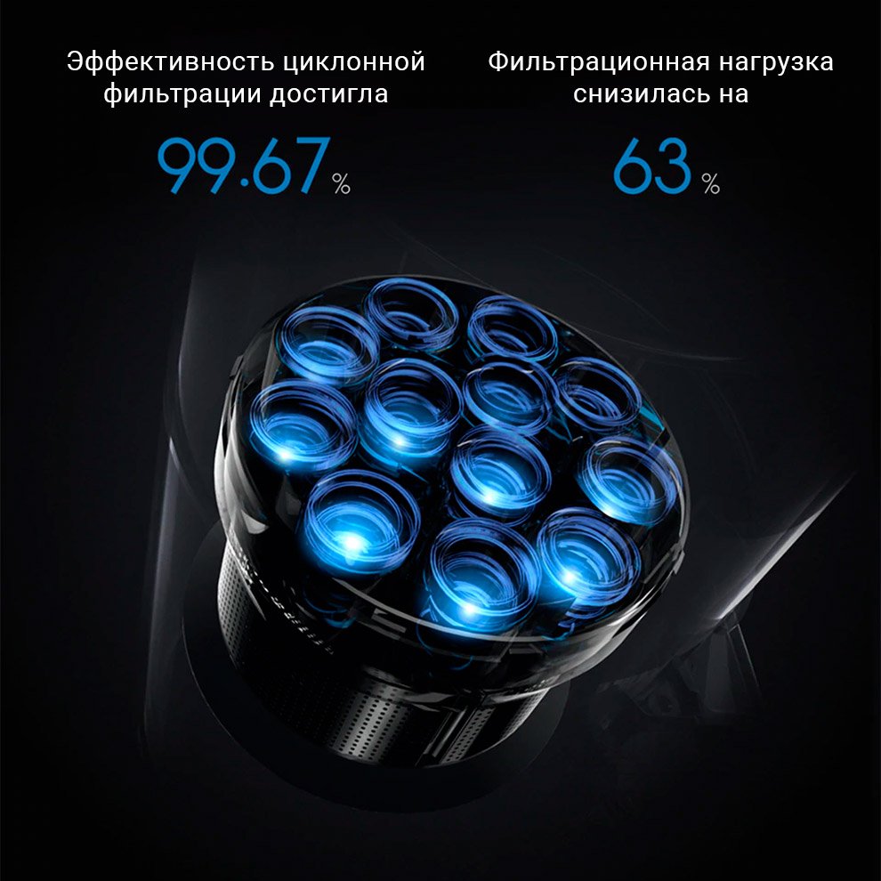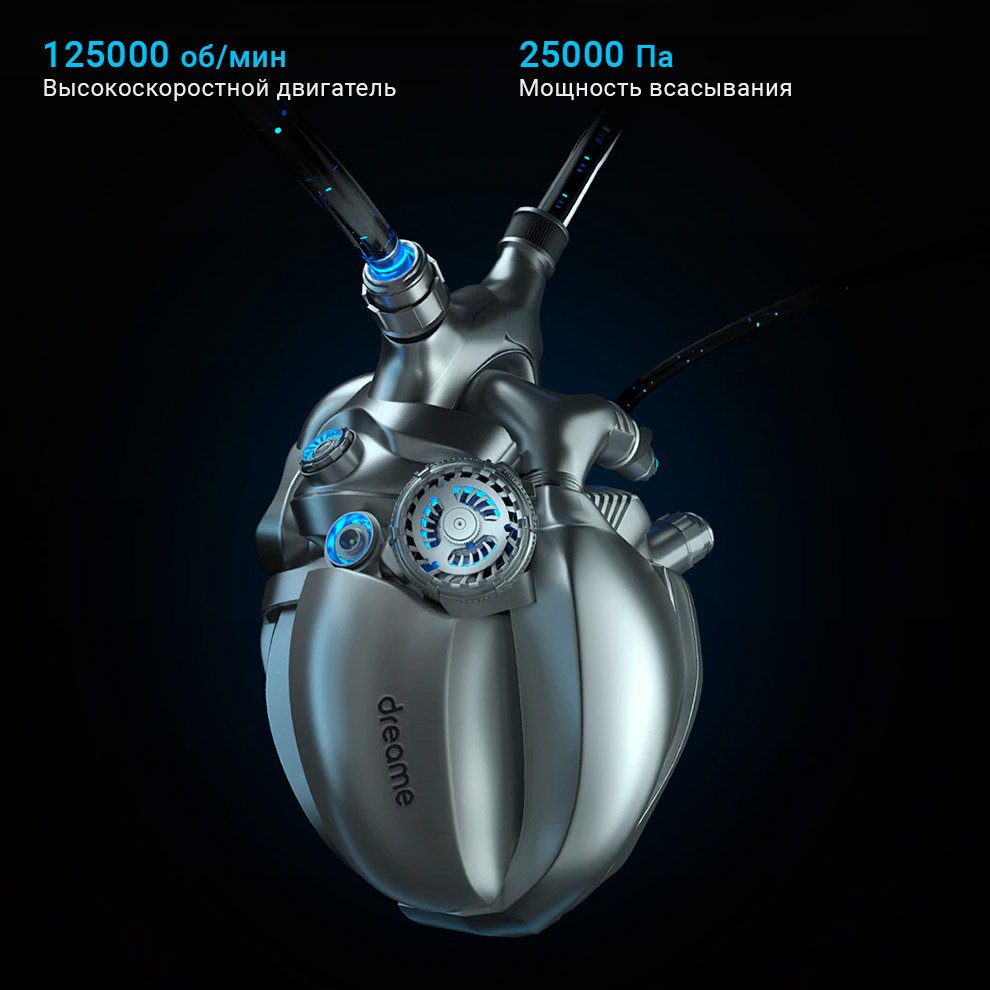 Приготовьтесь к уборке на высокой мощности! Пылесос всасывает пыль с силой до 25 000 Па. За минуту бесщеточный двигатель делает до 125 000 оборотов. Вы точно удивитесь, увидев объемы пыли, которые техника обнаружит при первых уборках.