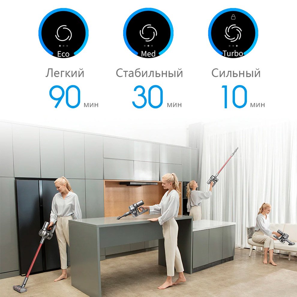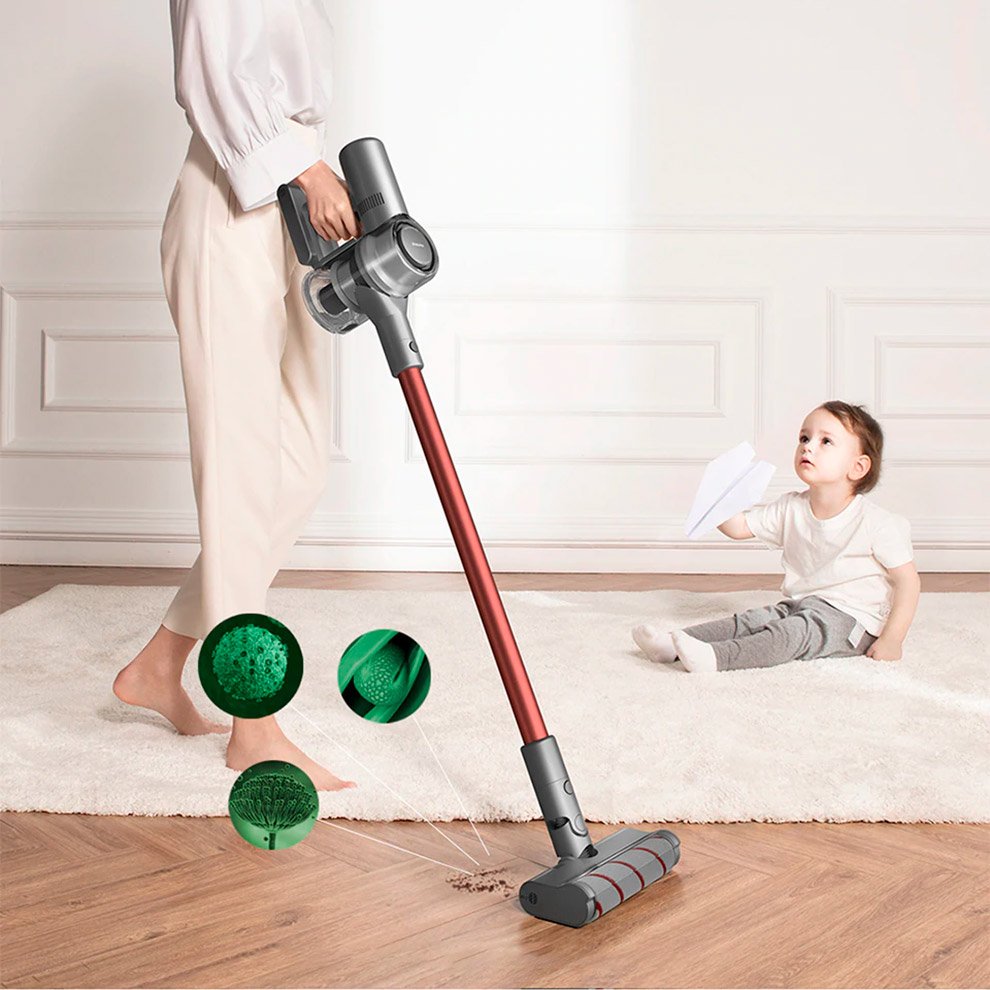 Разработчики Xiaomi усовершенствовали популярную модель мощнейшего беспроводного пылесоса. Устройство нового поколения лучше всасывает мусор и эффективнее фильтрует мелкие частицы пыли. А Пользователь может зафиксировать режим уборки, не зажимая кнопку включения. В комплект поставки входят такие насадки: моторизированные роликовые щетки, шланг, прямая насадка, а также щетки для уборки в щелях и мягкие щетки. Если пользователь выбирает эко режим, устройство может работать до 90 минут.