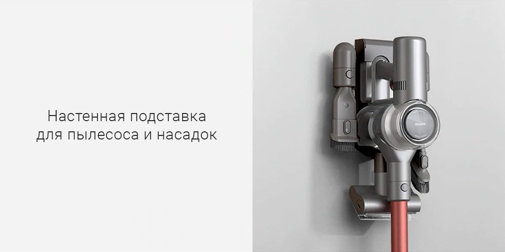 Насадки и шланги всегда под рукой. Благодаря настенному хранению пользователь комфортно заряжает устройство и размещает комплектующие в одном месте.
